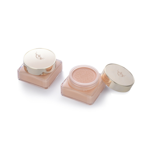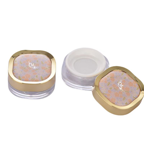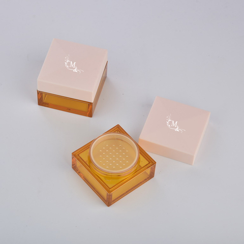 Di lusso a forma quadrata oro chiaro in plastica vuota di colore personalizzato vaso di polvere sciolto con spugna