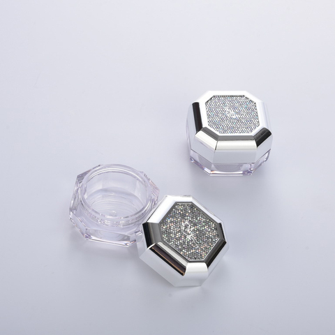 Vaso compatto cosmetico sfuso di forma esagonale di lusso da 20g piccolo con setaccio